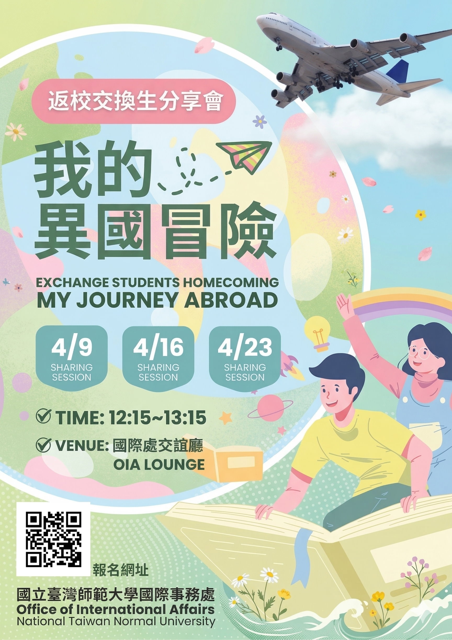 一起聽聽他們如何勇敢踏出那一步,在不同國度裡學習、成長。也許你會在他們的故事裡,看見未來的自己。想知道「出國交換」究竟是什麼感覺?那就別錯過這場分享會!讓我們一起出發,用聆聽展開一場屬於你的異國冒險。